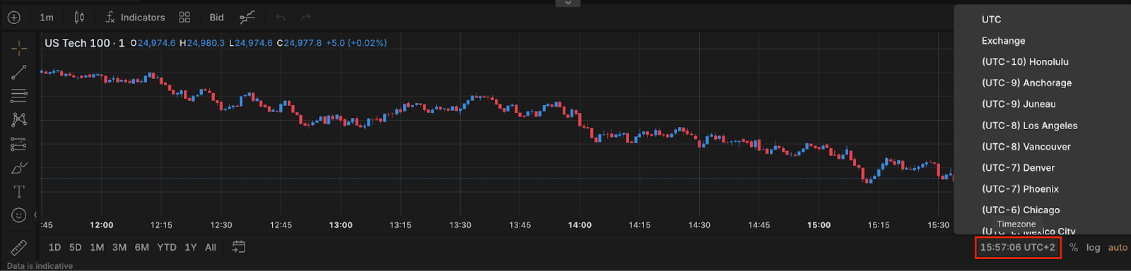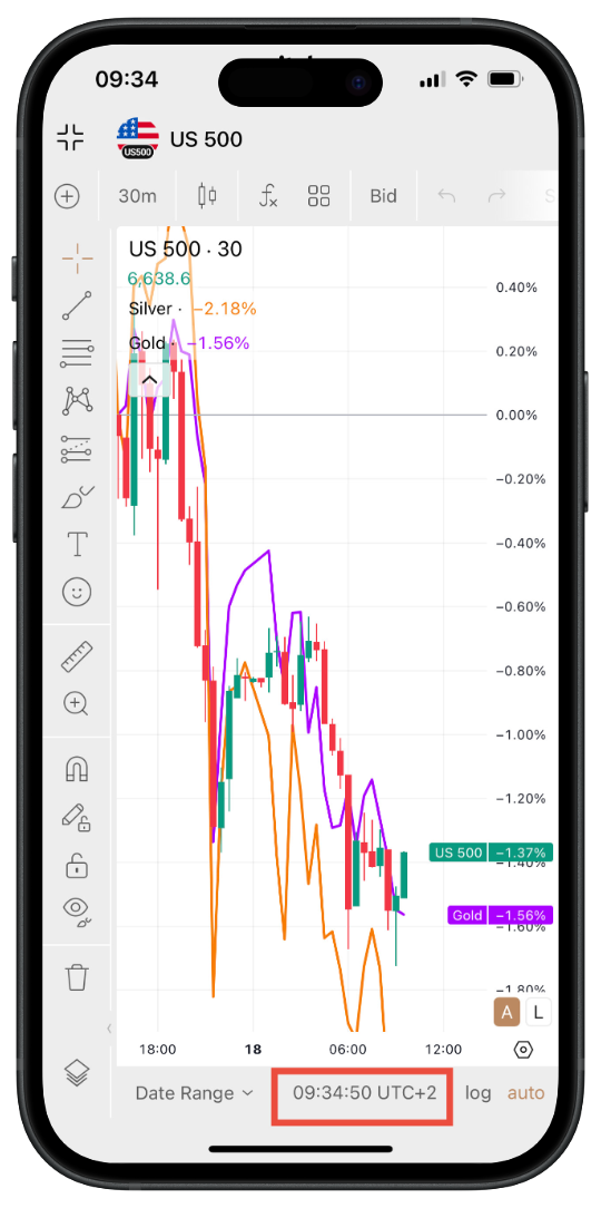 By default, the time zone displayed on the charts matches your device’s time zone.